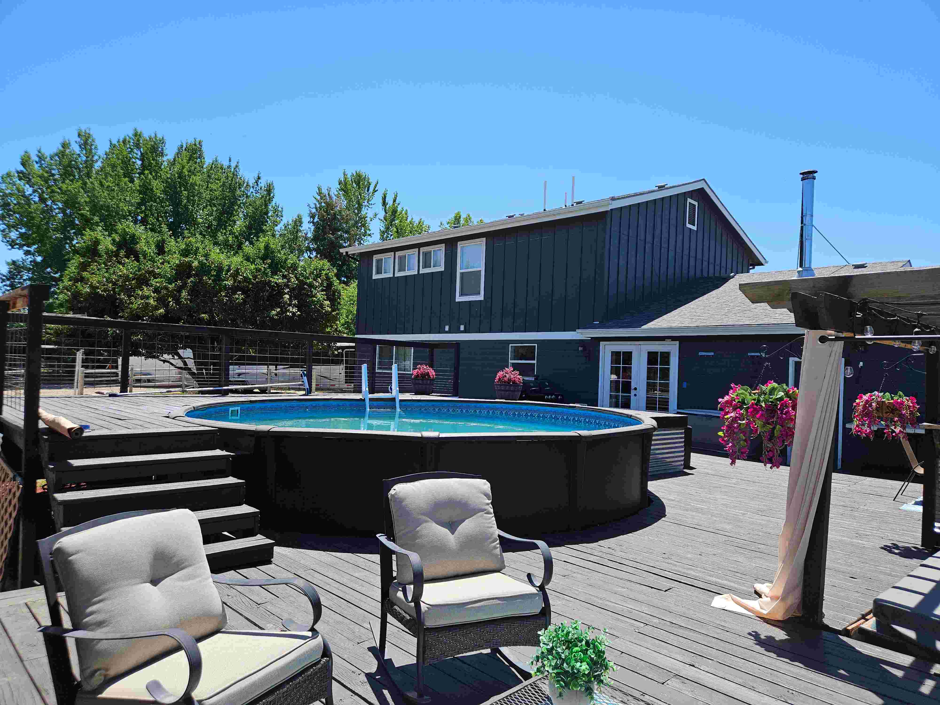 Step outside to your own private backyard oasis — a massive 1,500 sq ft deck, pool + hot tub, fire-pit area, and plenty of room to entertain under the Idaho sky. 🌅